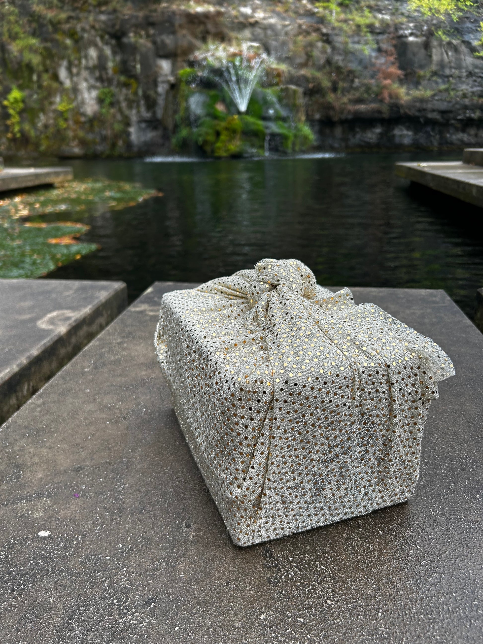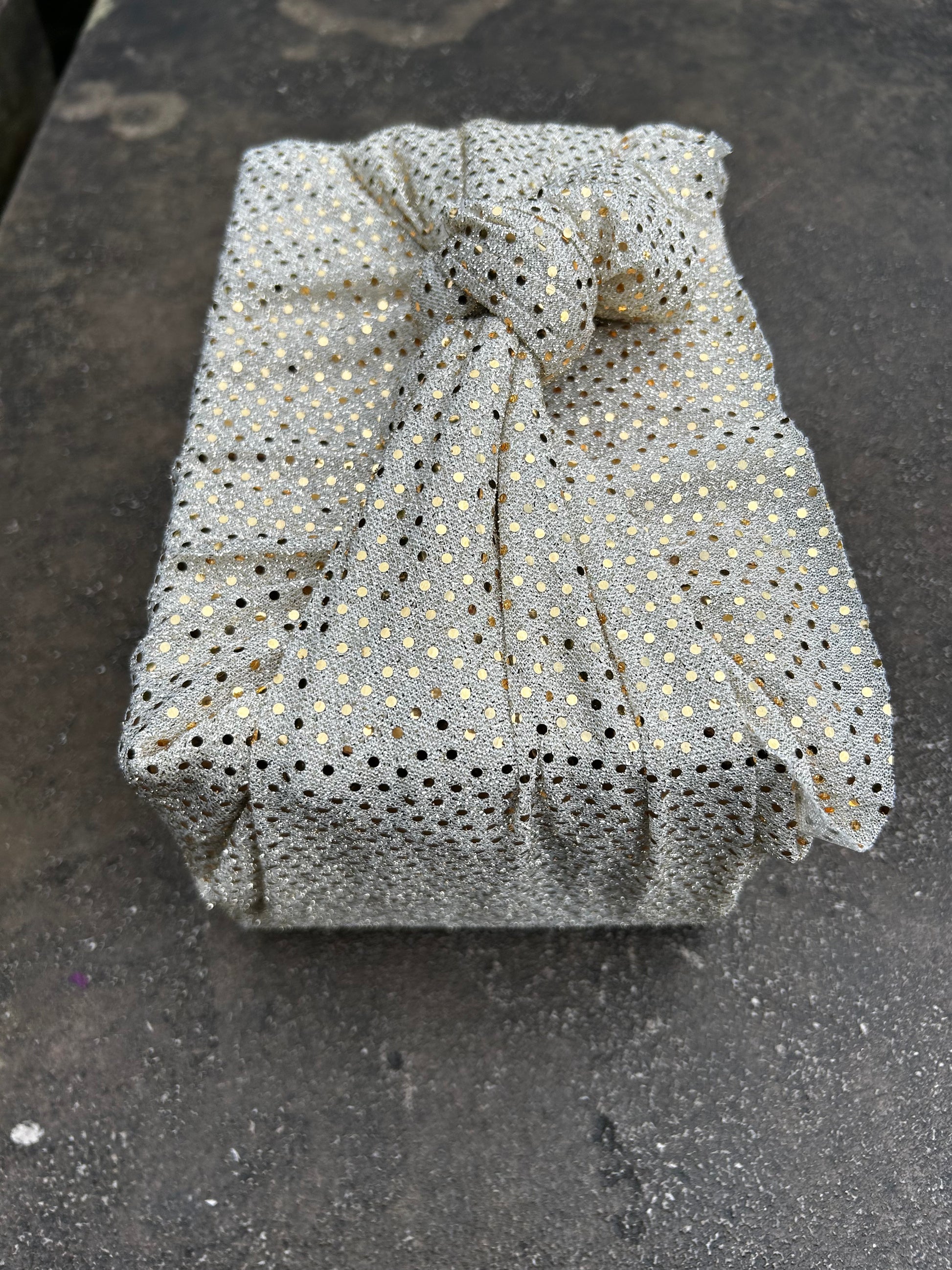 This shimmering gold-dotted fabric is the missing piece that completes your Garrick’s Gift set.